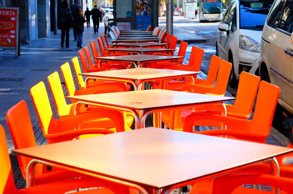 - Café urbain ou bar à tapas : miser sur le mix & match, les couleurs vives en accent, des chaises légères et très maniables.